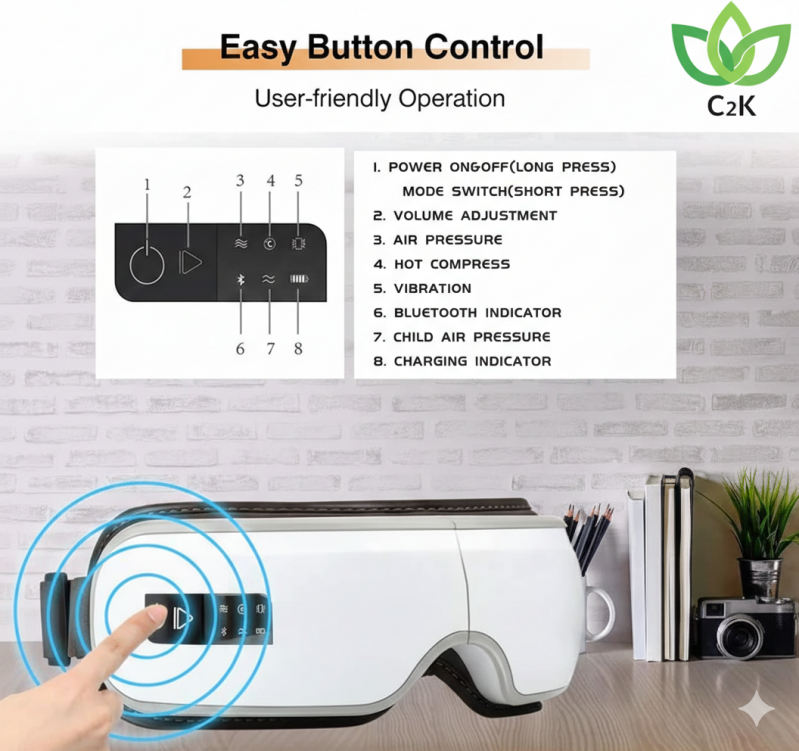 This guide provides essential information on how to use your device safely and effectively to relieve eye fatigue, reduce tension, and promote relaxation for healthier, brighter-looking eyes. Read on to discover how to maximize the benefits of your C2K Eye Massager.